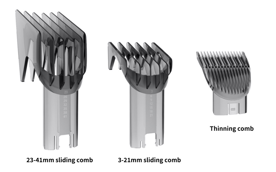 A: Xiaomiバリカンには3つの櫛が装備されており、2つの調整可能な3-21mmと23-41mmの櫛は、適切な長さの目的のために髪の長さを制限することができます。欲しいものがわかりやすいです~もう1つは間伐櫛で、髪の毛が太い場合は、薄毛櫛を使って薄くすることができます。