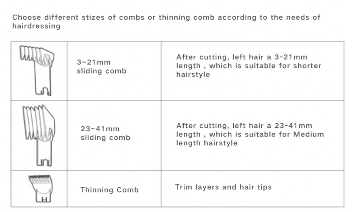4.適切な櫛を選択していません。あなたはヘアカットの長さのニーズに応じて適切な櫛のサイズを選択する必要があります。