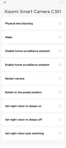 A:Mi Home APPを開いてください> > [デバイス]カードを選択します>> をタップします。 アイコン> > [自宅監視]と[イベント通知タイプ]がオンになっているか確認します。