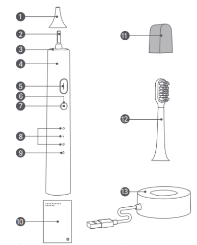 A: Xiaomiスマート電動歯ブラシT501の外観と付属品は次のとおりです。
