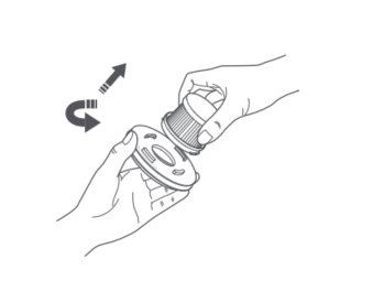 1.ダストコンパートメントアセンブリを取り外し、サイクロンセパレーターアセンブリを取り出します。[Filter Bラケット]を持ち、サイクロンセパレーターを反時計回りに回転させて取り外します。