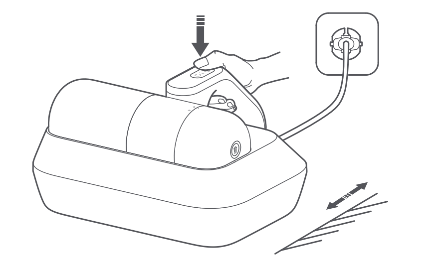 3.(テキスタイル表面から5cm以上)持ち上げたり、操作中にダニ掃除機を傾けたり、濃い色のテキスタイルを掃除したりすると、UVインジケーターが消えるのは正常です。