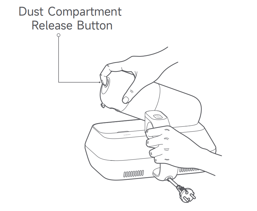 1.ダストコンパートメントリリースボタンを押したまま、同時にダストコンパートメントアセンブリを引き出します。