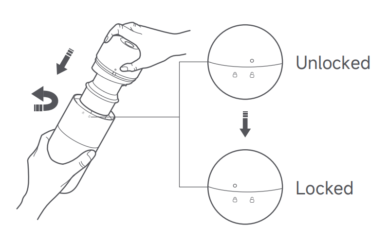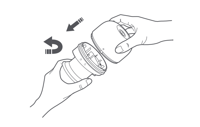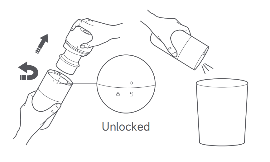 3.ダストコンパートメントを空にした後、マーク「○」をロック解除アイコンに合わせ、ダストコンパートメントカバーアセンブリをダストコンパートメントに再度取り付けます。次に、「○」マークがロックアイコンと揃うまでダストコンパートメントを回転させます。「カチッ」という音が聞こえたら、適切にロックされています。
