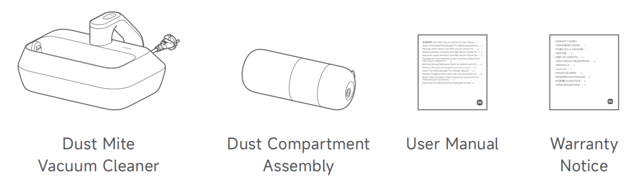 A:Xiaomiダニ掃除機Proのパッケージの内容には 、ダニ掃除機×1、ダストコンパートメントアセンブリ×1、ユーザーマニュアル×1、および保証通知×1が含まれます。