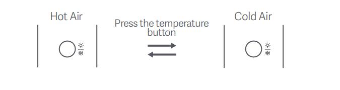 3.温度ボタンを押して、冷気モードと熱風モードを切り替えます。