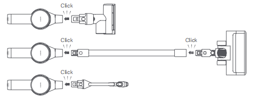 Xiaomi Vacuum Cleaner G20は、本体とさまざまなブラシヘッド/金属チューブの任意の組み合わせに取り付けることができ、「カチッ」という音が聞こえるとカチッとはまります。