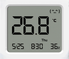 2.上ボタンを押すと、温度、湿度、時間の表示位置を切り替えることができます。メインディスプレイエリアは、温度、湿度、時間間のサイクル切り替えをサポートしています。
