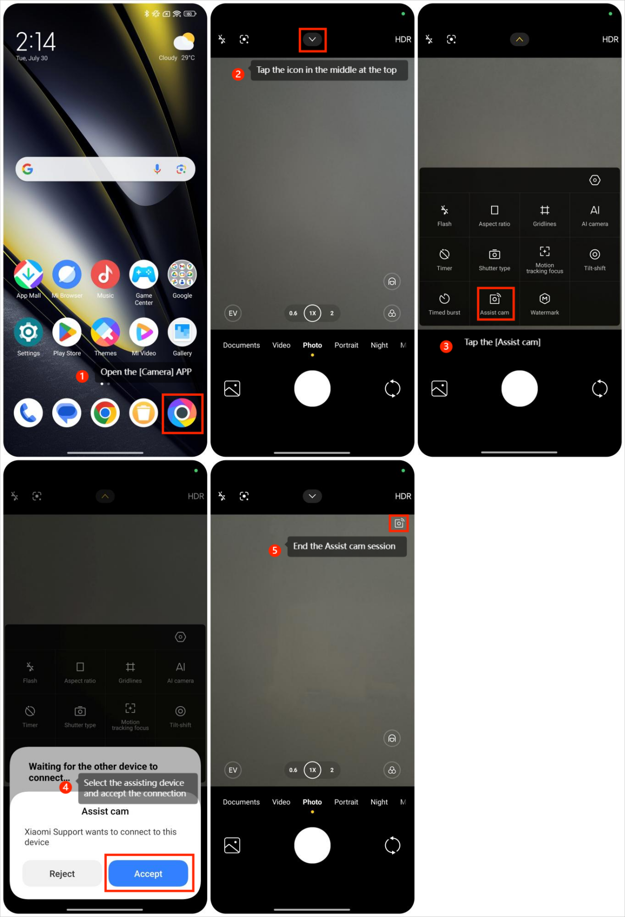 5.この機能を使用したくない場合は、カメラ画面の右上隅にあるアイコンをタップして、Assistカムセッションを終了できます。