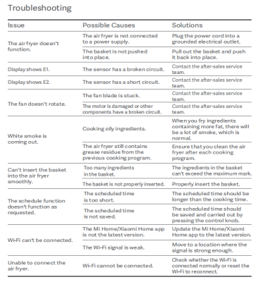 Xiaomiスマートエアフライヤー6.5Lのトラブルシューティング Xiaomiスマートエアフライヤー6.5L