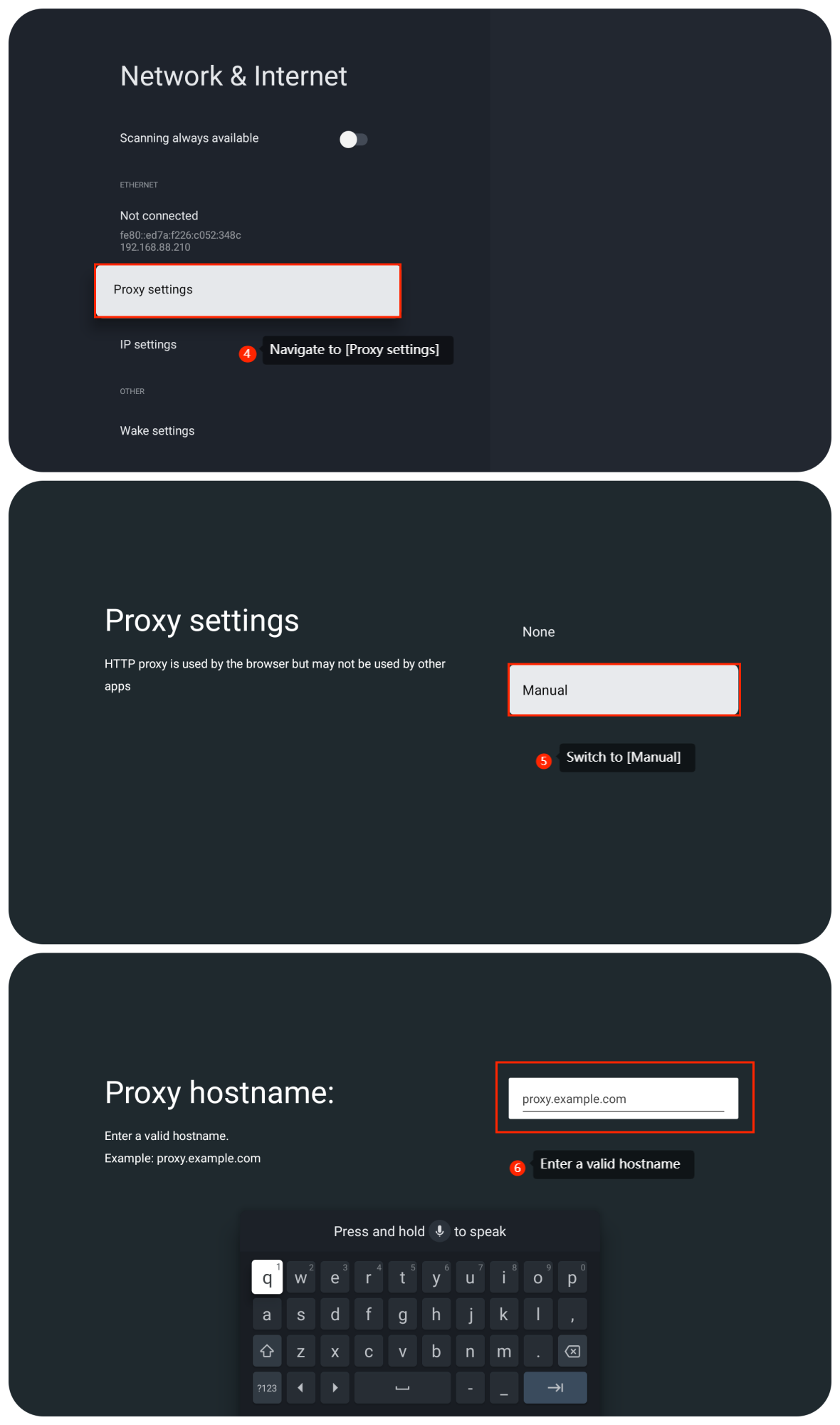 テレビにプロキシを設定するには、次の手順を参照してください。