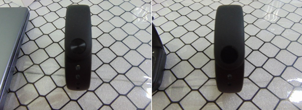 2.違いは、マイクの穴の存在にあります。Xiaomi Smart Band 9(左の画像)にはマイク穴がありませんが、Xiaomi Smart Band 9 NFC(右の画像)にはマイク穴があります。