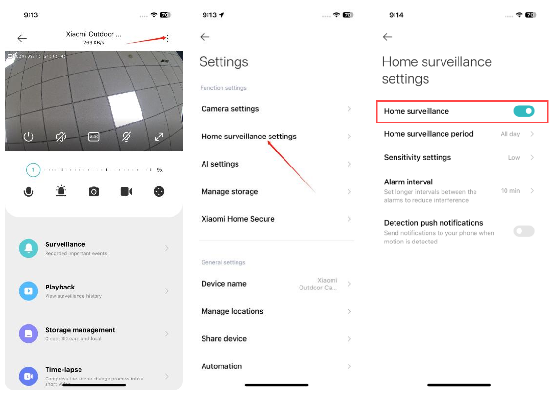 Xiaomi Outdoor Camera CW700Sで自宅監視設定を設定するにはどうすればよいですか?