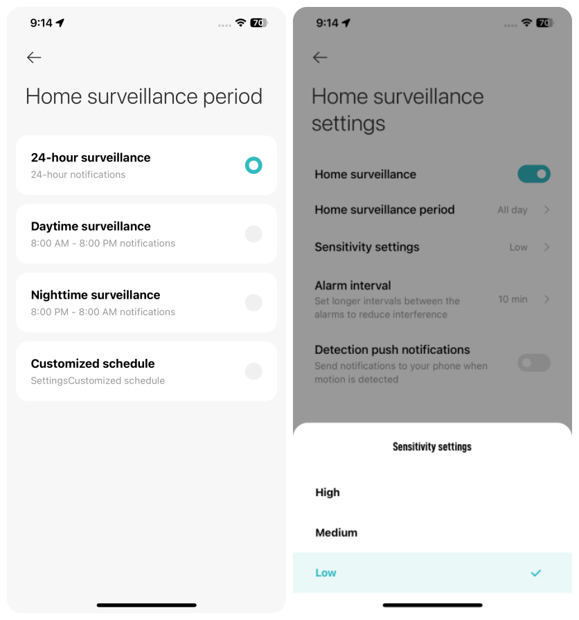 6. [自宅監視期間]をタップすると、24時間監視または特定の時間セグメントに設定できます。