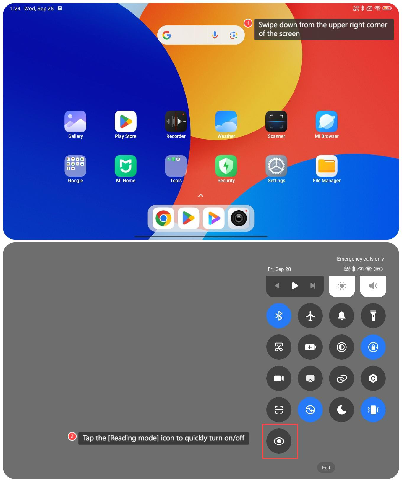 REDMI Pad SE 8.7 4Gで読み取りモードを有効/無効にするには 、次の方法を参照してください。