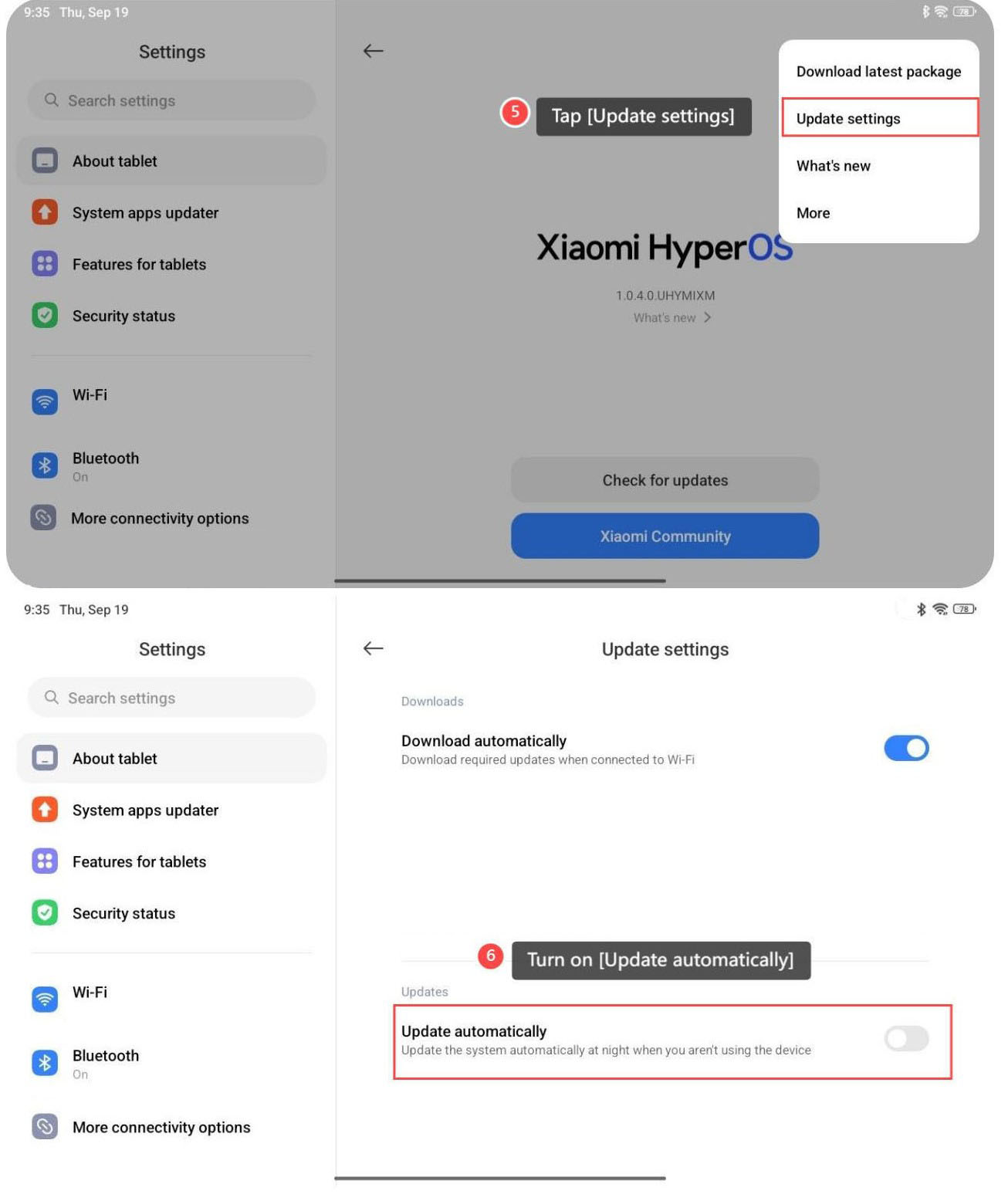 タブレットのシステムを自動的に更新するには、次の手順を参照してください。