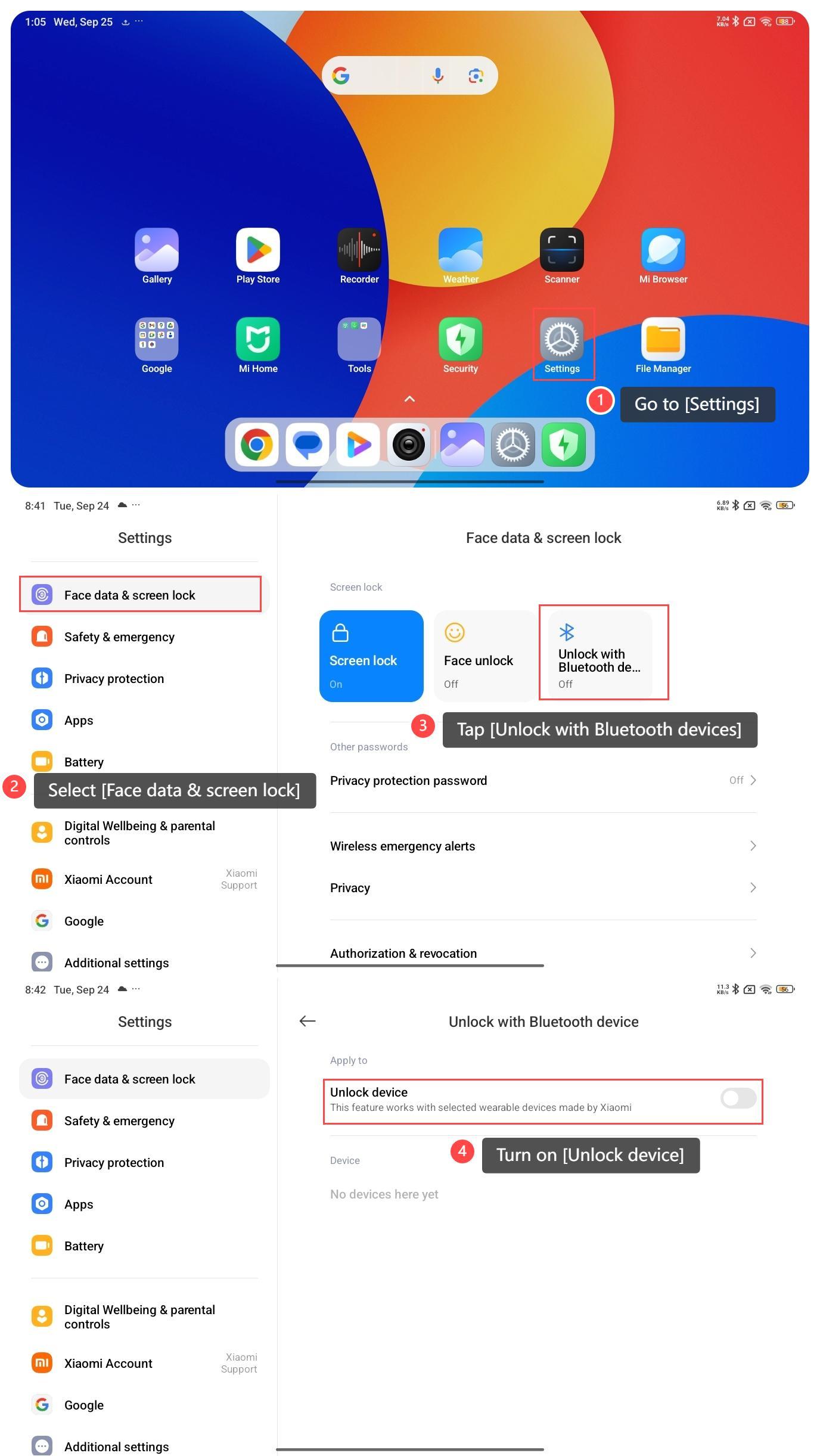 BluetoothデバイスでREDMI Pad SE 8.7 4Gのロックを解除するとは、スマートウォッチ、Bluetoothヘッドセット、スピーカーなどのペアリングされたBluetoothデバイスを、タブレットが近くにあるときに自動的にロックを解除できる信頼できるデバイスとして使用することを意味します。この機能は、接続されたBluetoothデバイスの近くを使用して、タブレットのロックを解除したままにする必要があるかどうかを判断します。