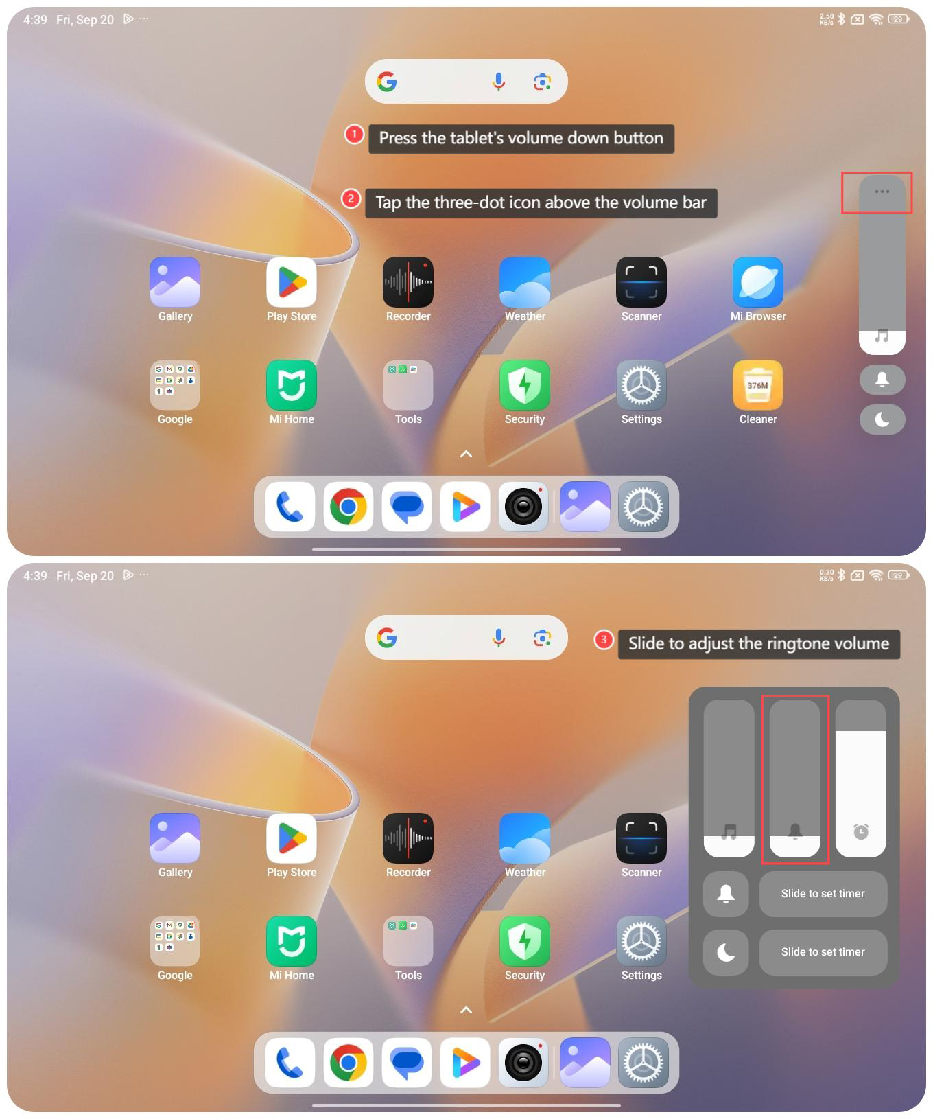 REDMI Pad SE 8.7 4Gの着信音の音量を調整するには