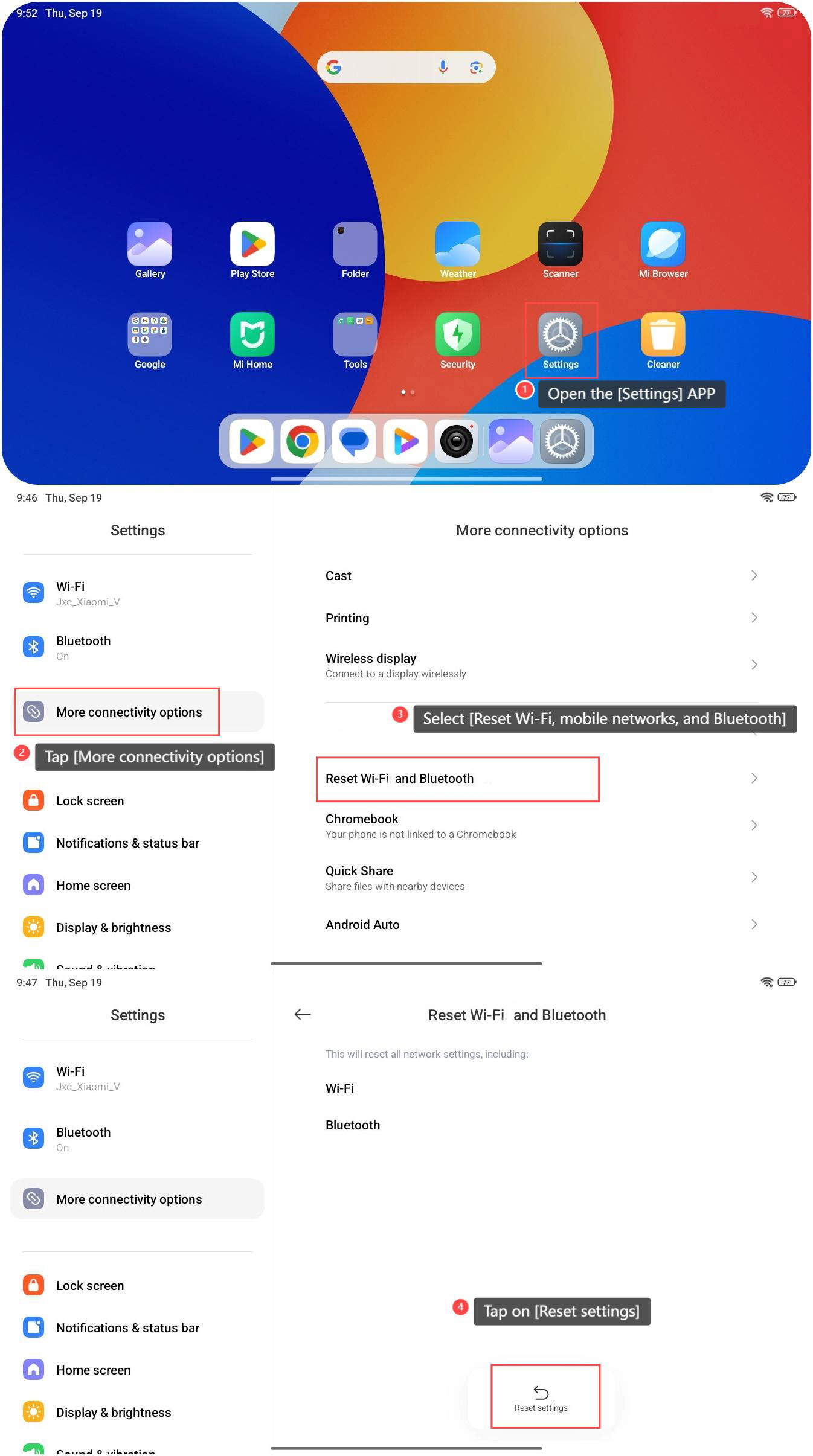 Wi-FiとBluetoothをリセットするには 、次の手順を参照してください。