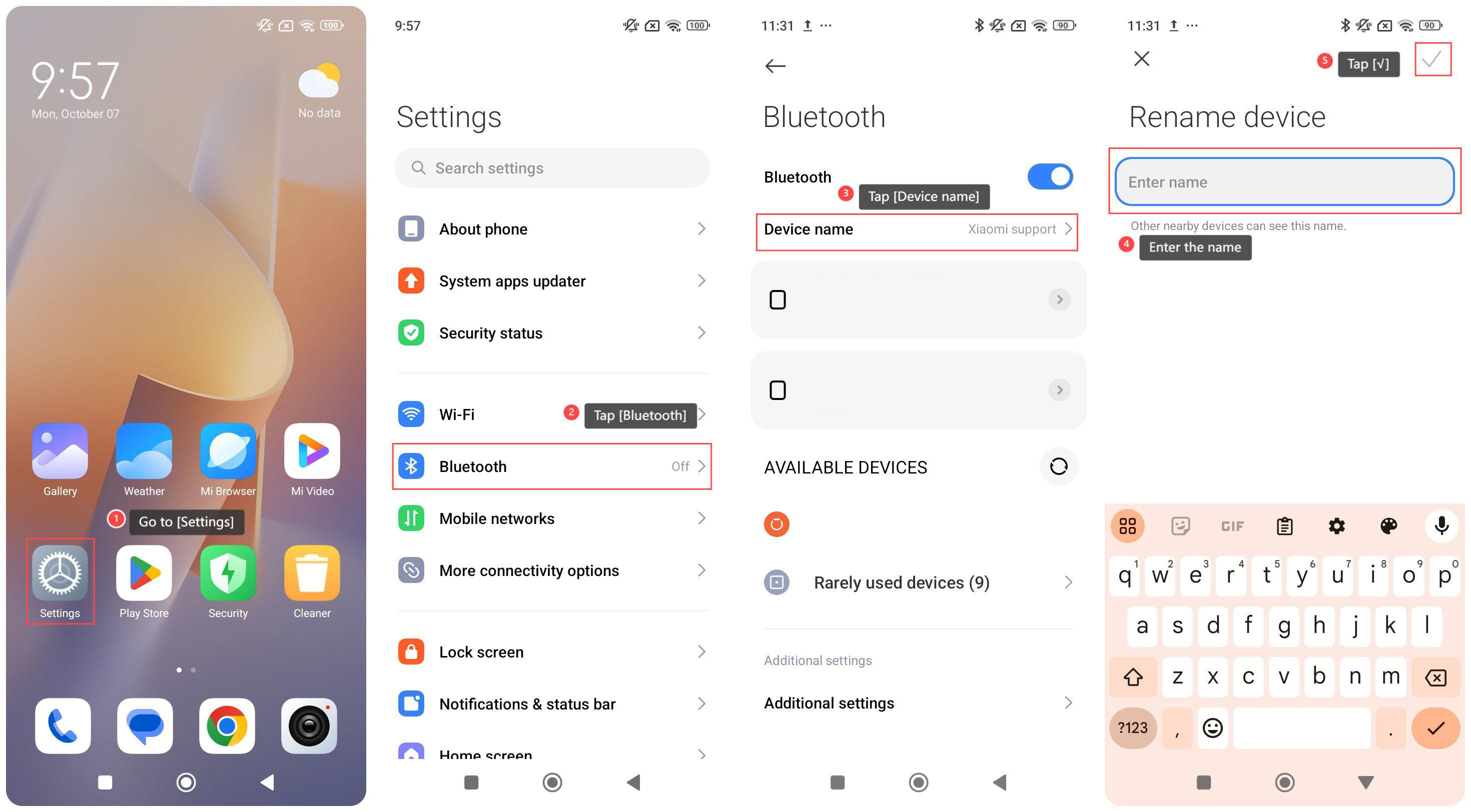 1.デバイスの名前を変更すると、近くの他のデバイスにこの名前が表示されます。デバイスのBluetooth名を認識し、Bluetooth経由でデバイスをより迅速に接続して、改善された便利な使用体験を実現できます。