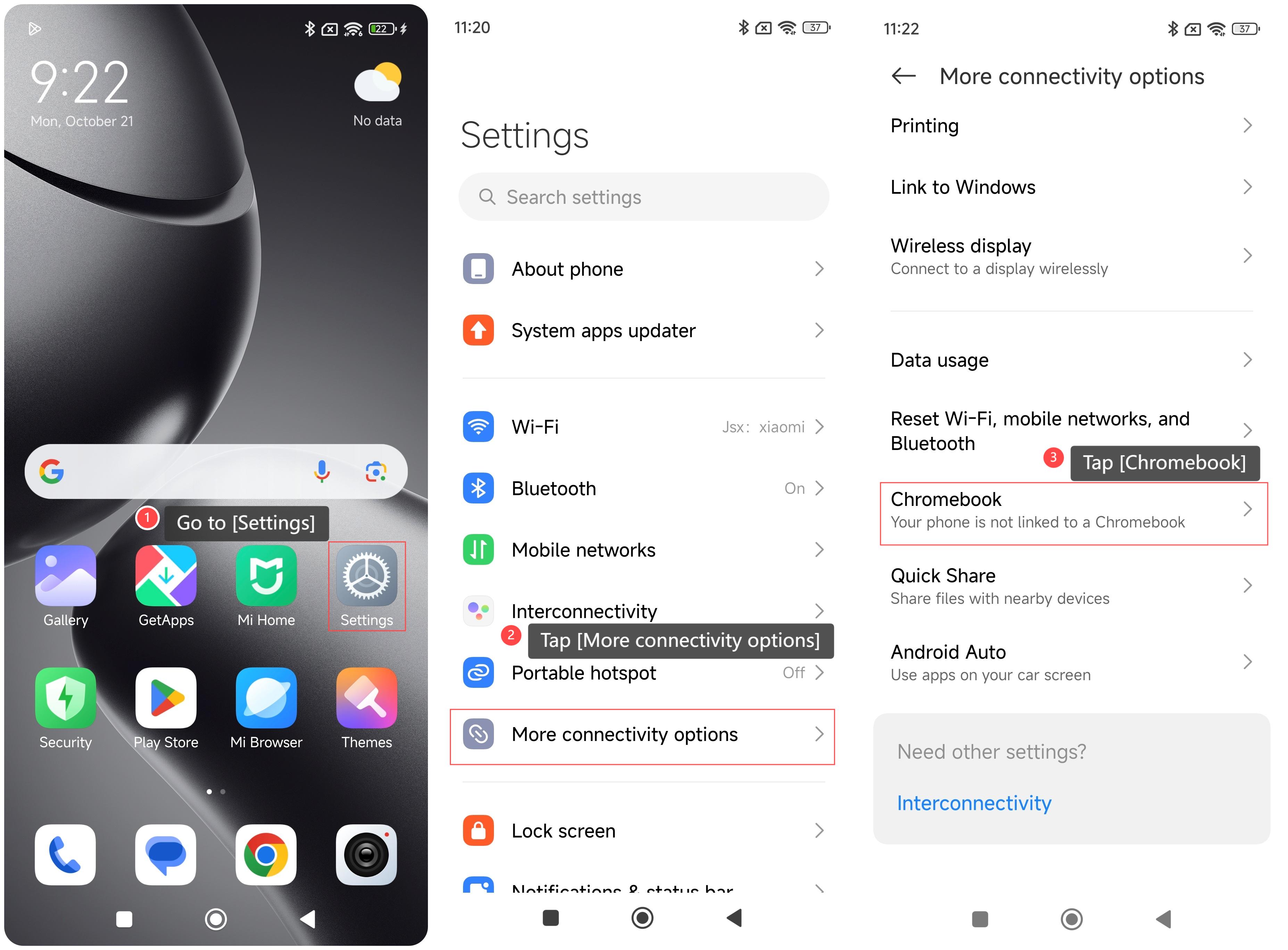 Xiaomi 14TをChromebookに接続すると、通知の同期、ファイルの共有、テキストメッセージの送信、電話のネットワークを使用したChromebookの接続、さらには電話でChromebookのロックを解除できます。