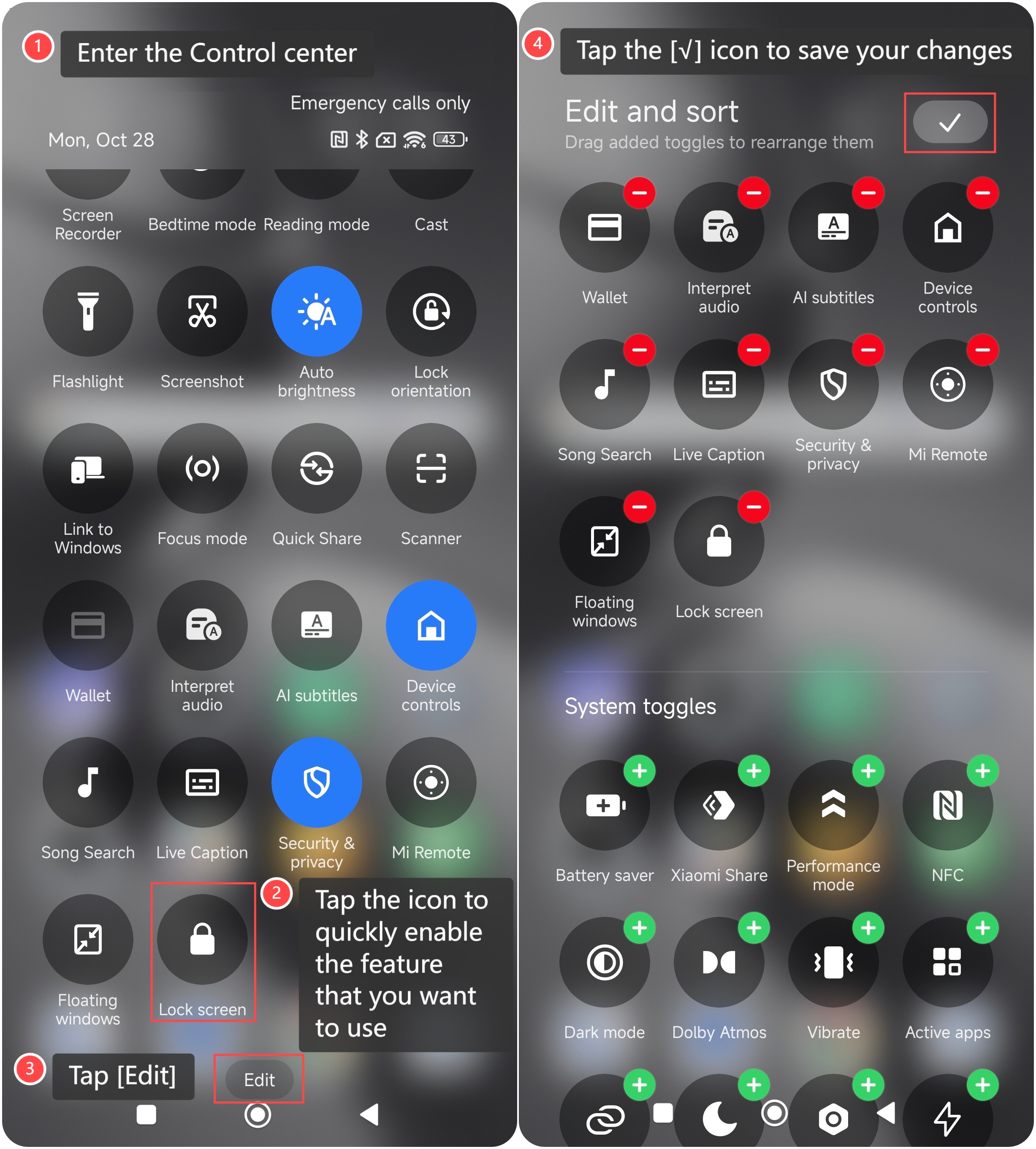 3.さらに、[編集]をタップしてから、変更するアイコンを追加または削除できます。