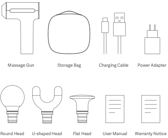 Xiaomi Massage Gun 2のパッケージ内容は次のとおりです。