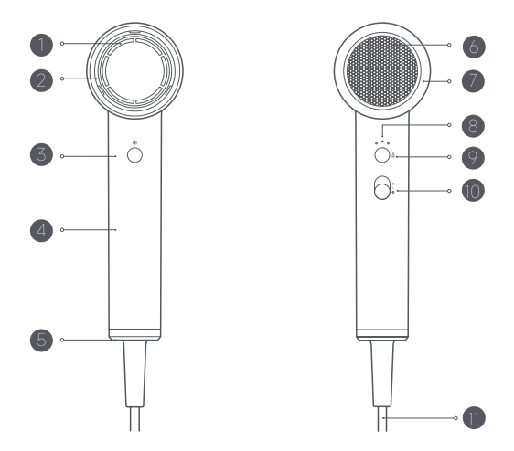 2. Q:Mijia 速乾イオンヘアドライヤーの外観紹介