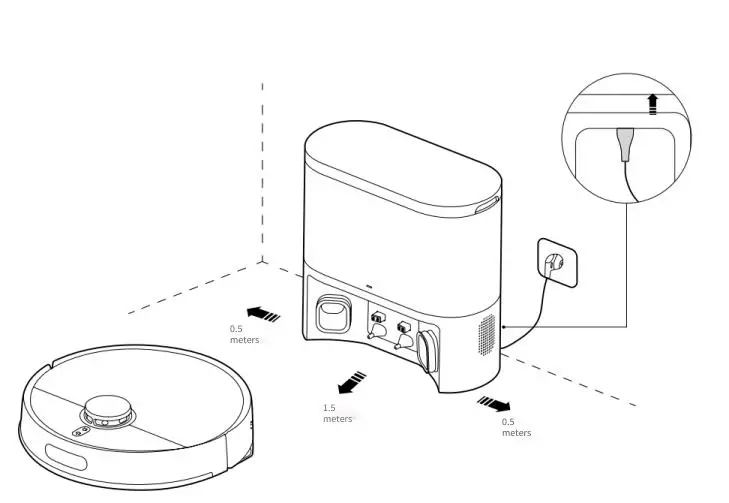 A: Xiaomi ロボット掃除機 H40充電ベースを壁に近い平らな場所に置き、充電ベースの両側に0.5m以上のスペースを確保し、プラグを電源コンセントに接続してください。より良いユーザーエクスペリエンスのために、充電ベースをWi-Fiの通信範囲内に設置してください。