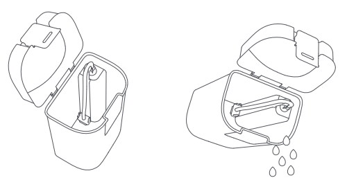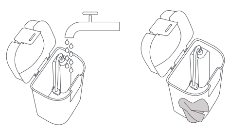 モップパッドアセンブリをモップパッドホルダーの取り付け穴に挿入し、「カチッ」という音が聞こえるまで押し込んでください。これにより、正しく取り付けられたことが確認できます;