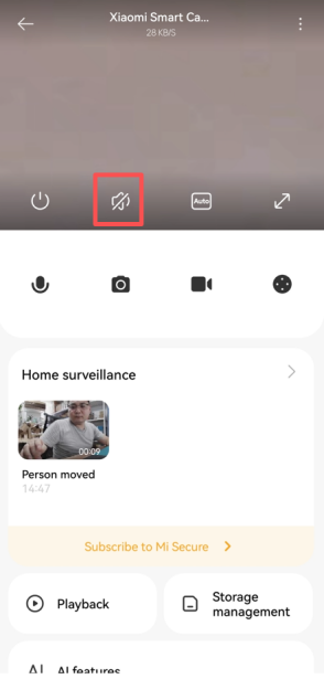 1. リアルタイム動画の音量は デフォルトで Xiaomi Home App ではオフになっています。Xiaomi Home App の動画ウィンドウで [ミュート] アイコンをタップすると音量を有効にできます。音量が小さい場合は、スマートフォンでさらに上げてください。