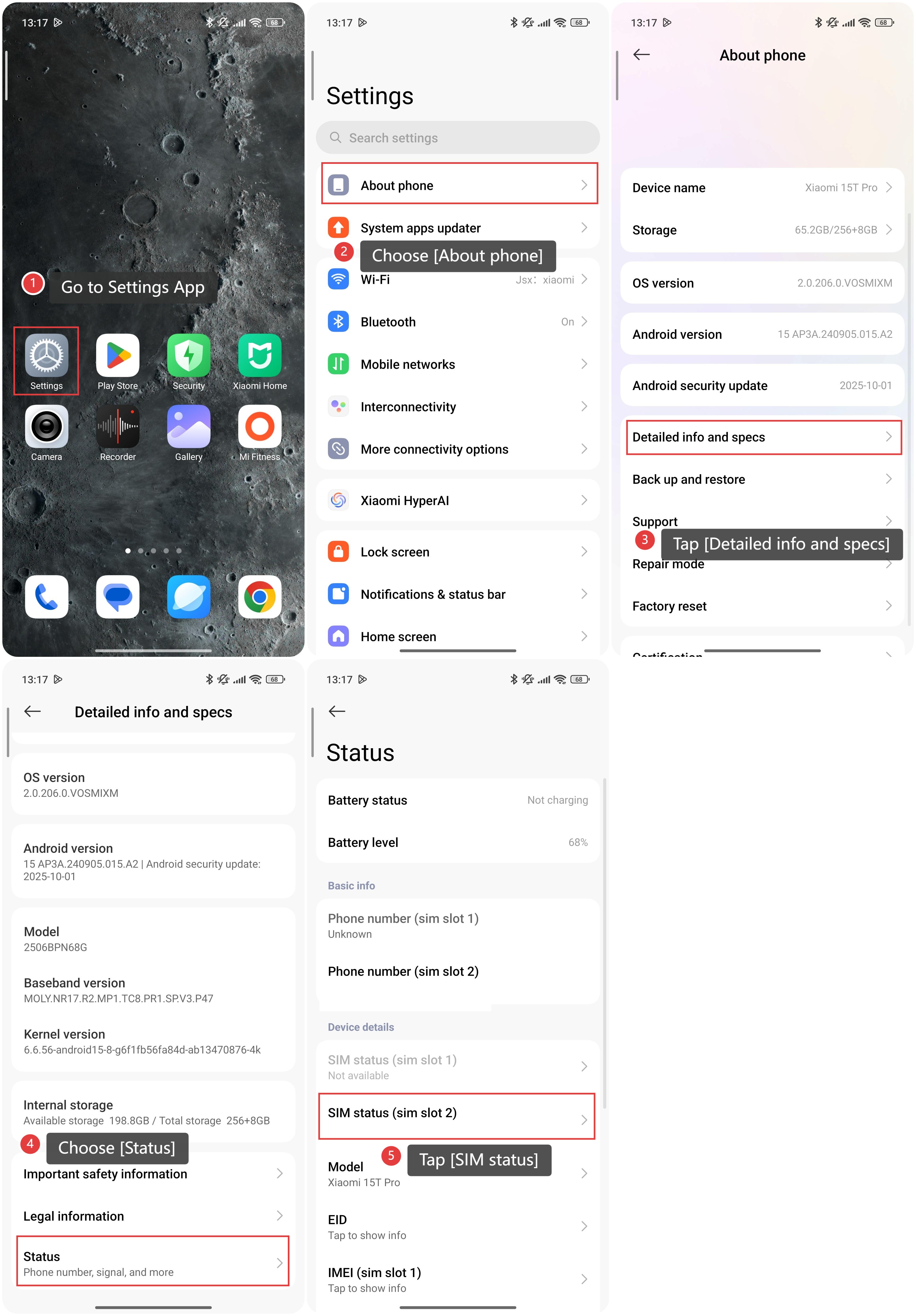 HyperOS 2.2 以上では、Wi-Fi に接続している場合でも、SIMカードの電波表示に5Gアイコンが表示されます。