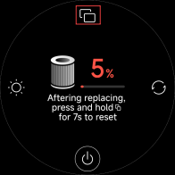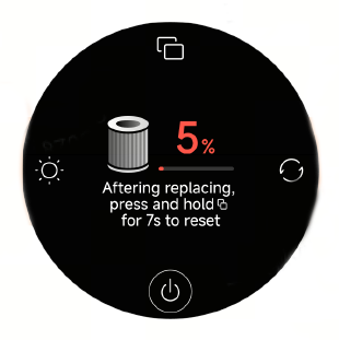 A: Mijia Smart Air Purifier MAX には RFID タグモジュールが搭載されていません。 フィルターを交換した後は、 フィルターの寿命を手動でリセットする必要があります。 フィルター関連のページで、 ディスプレイボタンを 7 秒間長押ししてフィルターをリセットします。 リセットが完了すると、 画面にフィルターの寿命が表示されます。