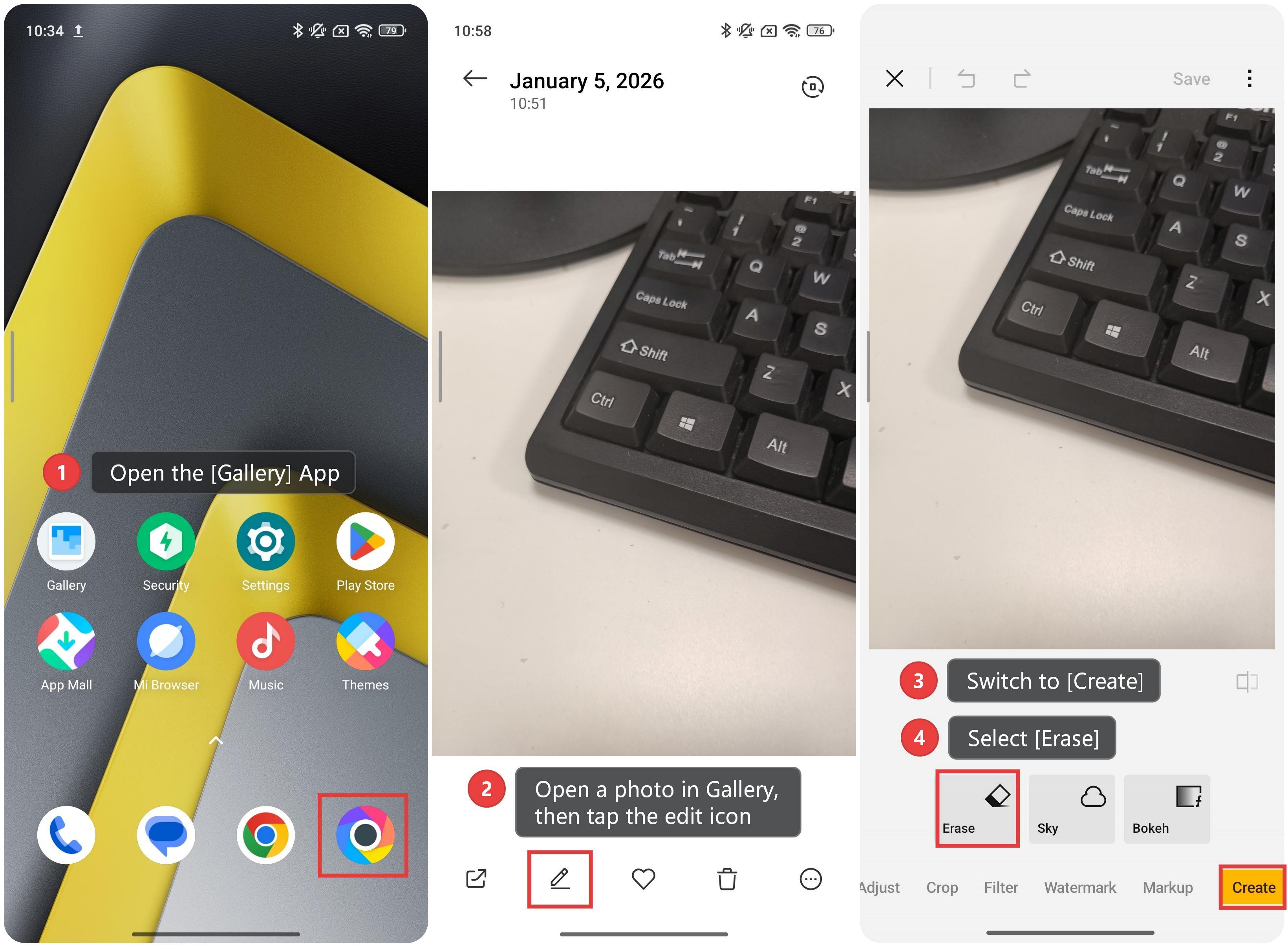 POCO M8 5G で AI消去 を使用するには、次の手順を参照してください。