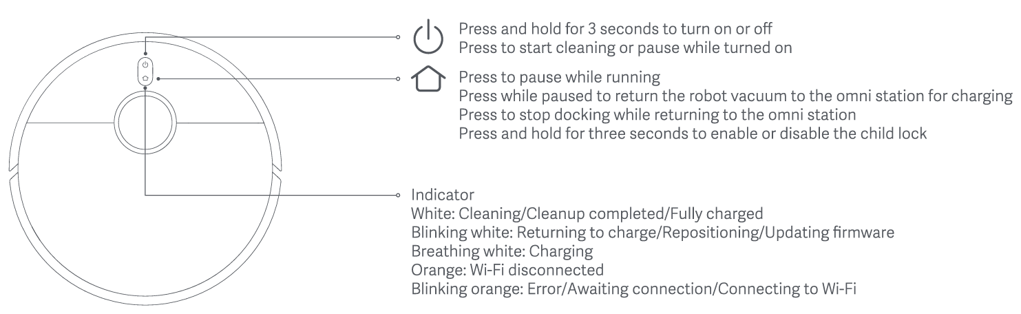 5. Q: Xiaomi ロボット掃除機 X20 Max の omni station インジケーターのステータスは何を意味しますか? A:オムニステーションインジケーターの状態は次のとおりです。 1. 白:オムニステーションは正常に動作します。 2. オレンジ色に点滅している場合:オムニステーションにエラーが発生しています。音声放送と Xiaomi Home アプリの通知に注意して、具体的な異常内容を確認してください。