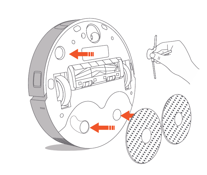40. Q: Xiaomi ロボット掃除機 X20 Max のモップパッドを交換する方法は? A:モップホルダーを取り外し、マジックテープでモップパッドをモップホルダーに固定します。掃除のためにはがすか、新しいモップパッドに交換し、中央の穴に合わせて貼り付けてください。