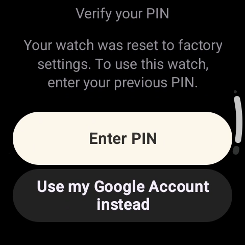時計を初期化する際には、Google アカウントまたは以前のパスワードの確認が必要になります。両方を忘れてしまった場合は、アフターサービスに連絡して強制ファームウェアアップデートを行ってもらう必要があります。