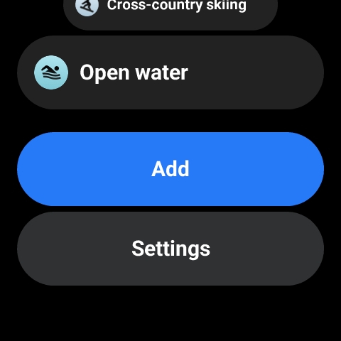 1. ウォッチのスポーツアプリをタップすると、スポーツリストに入れます。スポーツリストで特定のスポーツをタップすると、開始画面に入ります。開始画面の下部にある[設定]アイコンをタップして設定できます。