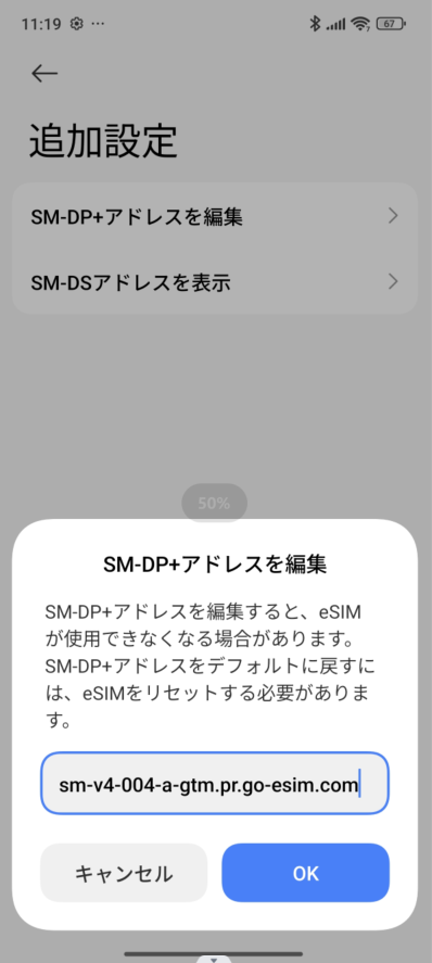手動追加によるDocomoのeSIMのアクティベートができません。
