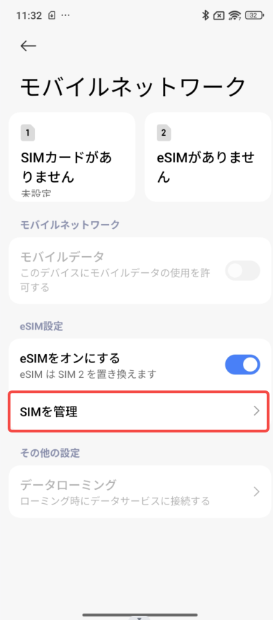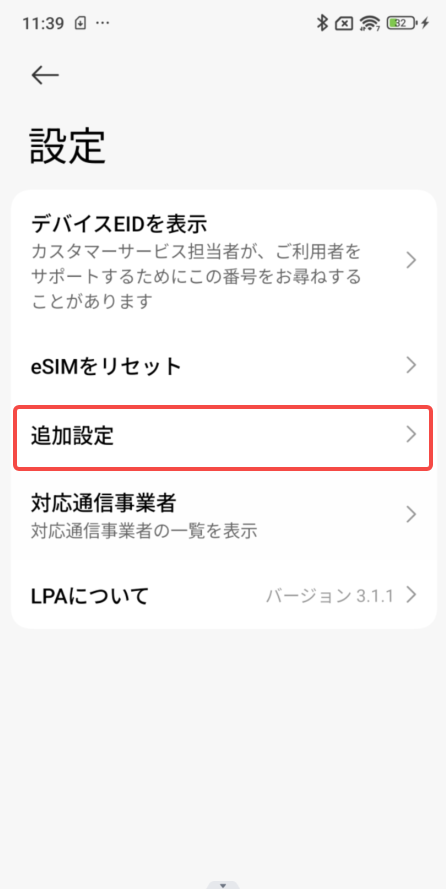 「設定」→「モバイルネットワーク」→「SIMを管理」→右上の「設定アイコン」→「LPAについて」からご確認いただけます。