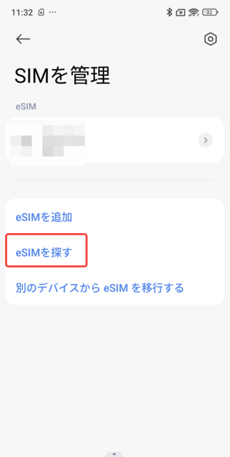 8、以下の画面に戻って、「eSIMを探す」にてeSIMを検索する。