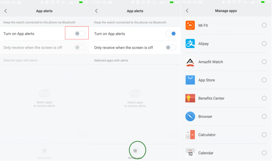 5) 화면 하단 중앙의 "앱 관리"를 누르고 경고할 앱을 선택합니다.