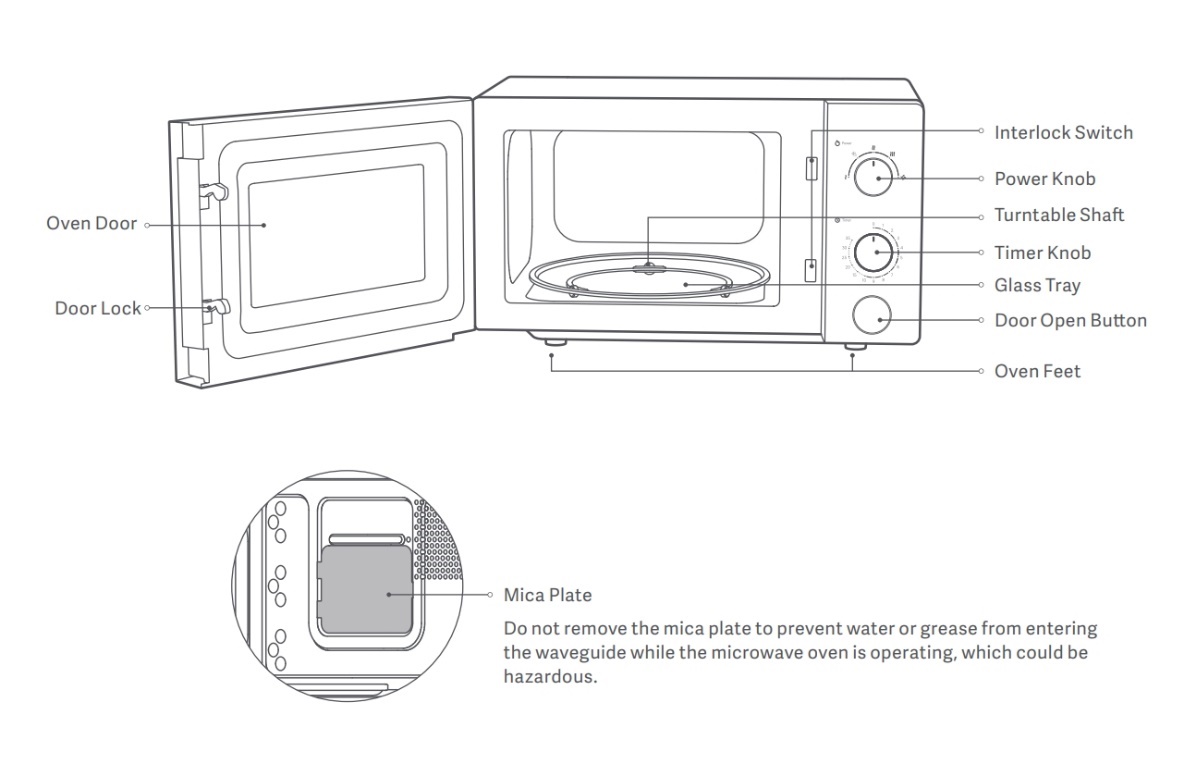 A: Xiaomi 전자 레인지 부품 및 액세서리의 이름과 그림은 다음과 같습니다.