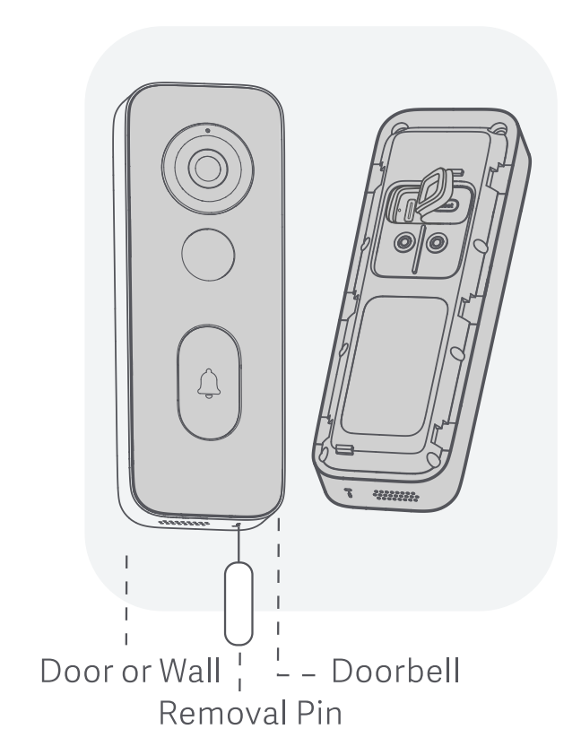 2. 제거 핀을 누르고 초인종을 위로 밀어 베이스에서 초인종을 제거합니다.
