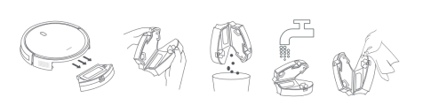 A: 본체에 물탱크 걸레 브래킷 구성 요소가 설치되어 있고 물탱크에 물이 채워져 있는지 확인하십시오. 그런 다음 앱을 사용하거나 본체의 전원 버튼을 눌러 청소 과정을 시작하세요. 본체가 충전 도크에서 청소를 시작합니다. 가득 찬 물 탱크는 45분 동안 걸레질할 수 있습니다. 면적이 넓어 걸레질이 45분을 초과하는 경우 중간에 물탱크를 다시 채우는 것이 좋습니다. 청소 후에는 수동으로 쓰레기통을 비우고 걸레를 수동으로 청소하고 자연 건조해야 합니다.