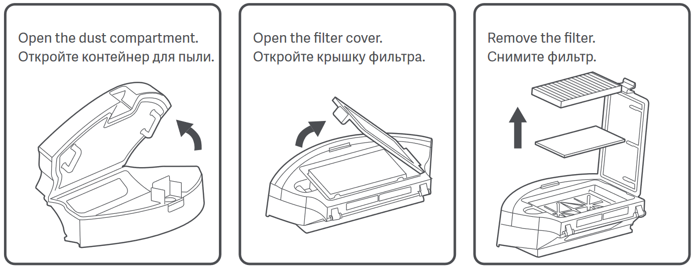 A: 먼지통 입구의 표시에 주의하고 먼지통을 올바르게 열고 먼지통 필터를 제거하여 먼지통을 열려고 하지 마세요.