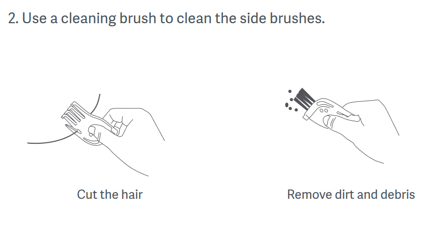 2. 사이드 브러시에 머리카락이나 이물질이 엉킬 수 있습니다.