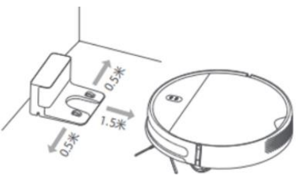 3. 충전 도크가 벽에 붙어 있는지, 전방 2m, 좌우 0.5m 이상의 열린 공간이 있는지 확인하세요. 충전 도크가 이를 인식합니다.