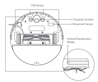 15.Mi Robot Vacuum MOP의 절벽 센서를 유지 관리하는 방법은 무엇입니까? A: 다음을 포함하여 부드럽고 마른 천으로 로봇의 각 센서를 닦고 청소하십시오.