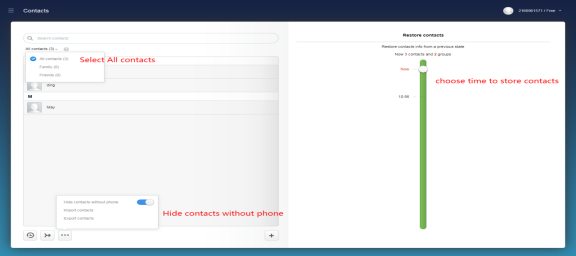 2. Xiaomi 클라우드 서비스의 연락처 동기화 스위치가 켜져 있고 연락처가 클라우드에 성공적으로 동기화되었는지 확인합니다. i.mi.com 에서 연락처에 로그인하여 이전 연락처 정보를 복원할 수 있습니다. 설정 방법은 아래 그림과 같이 연락처-연락처 복원-복원입니다.